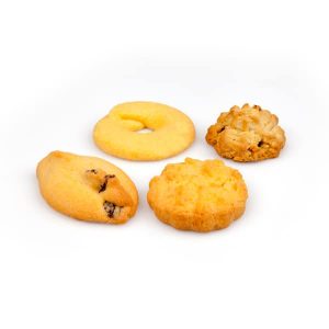 INGREDIENTI: farina di FRUMENTO, zucchero, burro (BURRO, colorante: caroteni), margarina vegetale [oli e grassi vegetali non idrogenati (olio di soia, girasole, colza e mais; grassi di palma, cocco e palmisti), acqua, emulsionanti: mono e digliceridi degli acidi grassi, esteri poligliceridi degli acidi grassi, lecitina di SOIA, aromi, colorante: caroteni], tuorlo d’UOVO, farina di mais, uvetta passa (uvetta, olio vegetale di semi di cotone), albume d’UOVO, frutti di bosco [(amarene, mirtillo rosso, mirtillo blu, lampone e ribes nero in proporzione variabile), zucchero, olio di semi d’uva, olio di girasole, acidificante: acido citrico, conservante: acido sorbico], fiocchi di mais (farina di mais, estratto di malto d’ORZO, sale), agenti lievitanti: difosfati, carbonati di sodio, amido di FRUMENTO, acqua, sale, aromi. Prodotto in una linea che lavora anche FRUTTA A GUSCIO. Conservare in luogo fresco e asciutto